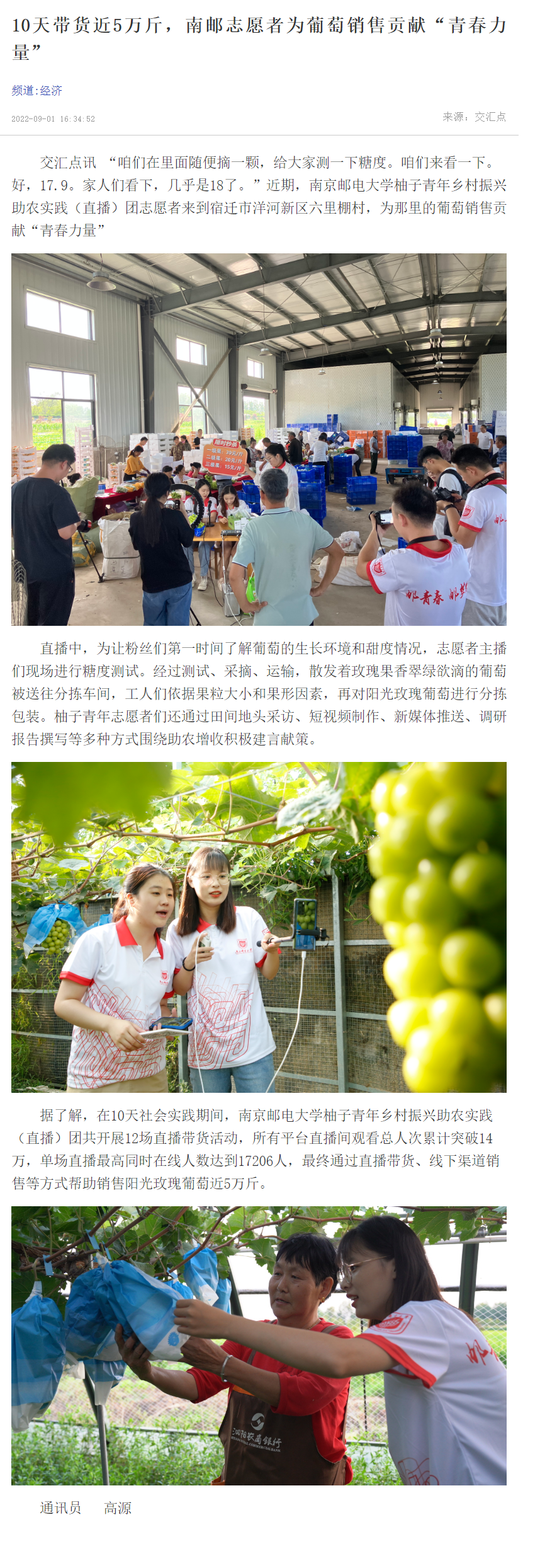 | 【新華日?qǐng)?bào)客戶端】10天帶貨近5萬(wàn)斤,南郵志愿者為葡萄銷售貢獻(xiàn)“青春力量” |