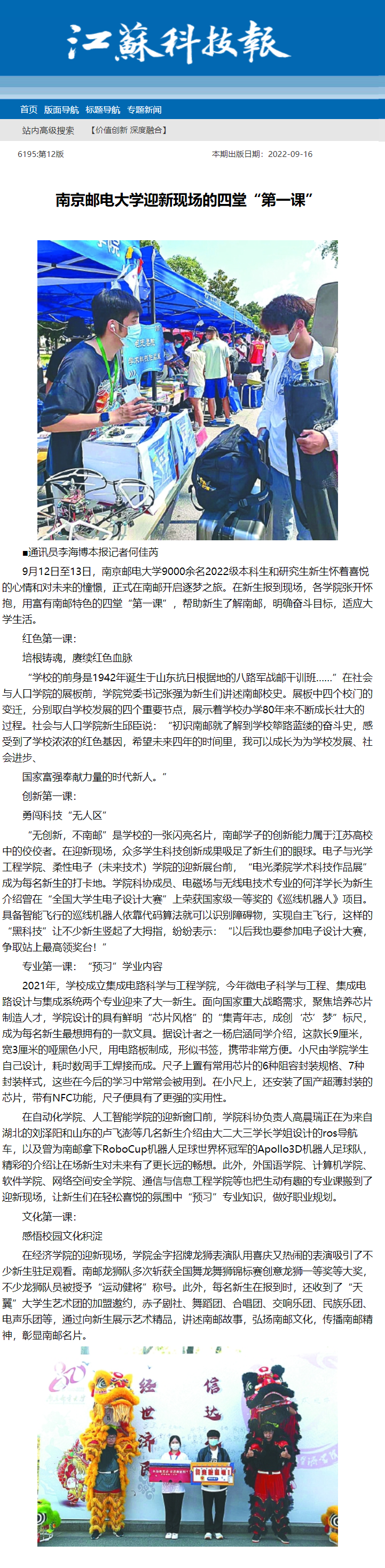 | 【江蘇科技報】南京郵電大學迎新現場的四堂“第一課” |