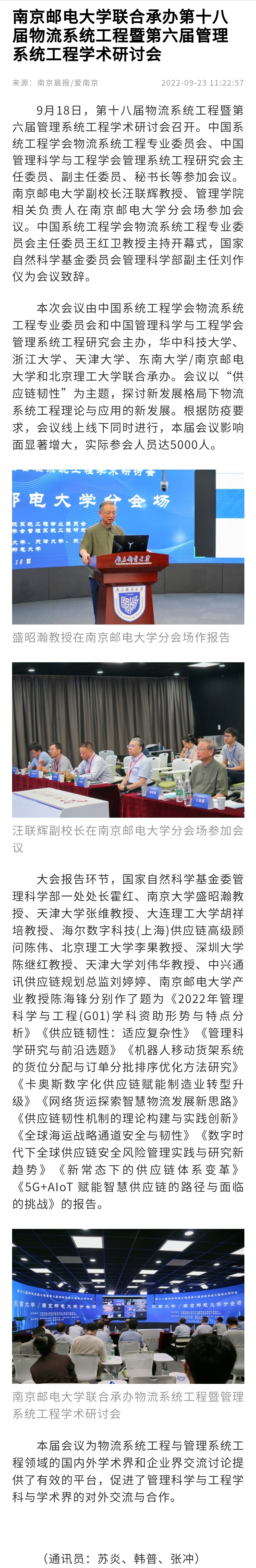 | 【南京晨報客戶端】南京郵電大學聯合承辦第十八屆物流系統工程暨第六屆管理系統工程學術研討會 |