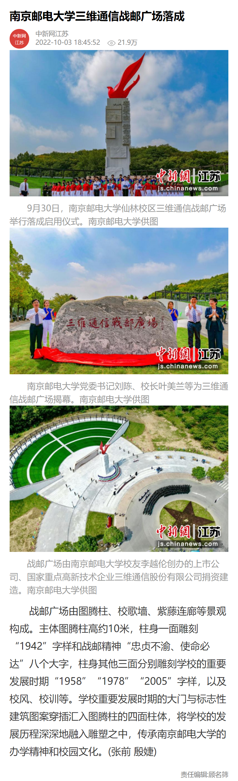 | 【中國新聞網】南京郵電大學三維通信戰郵廣場落成 |