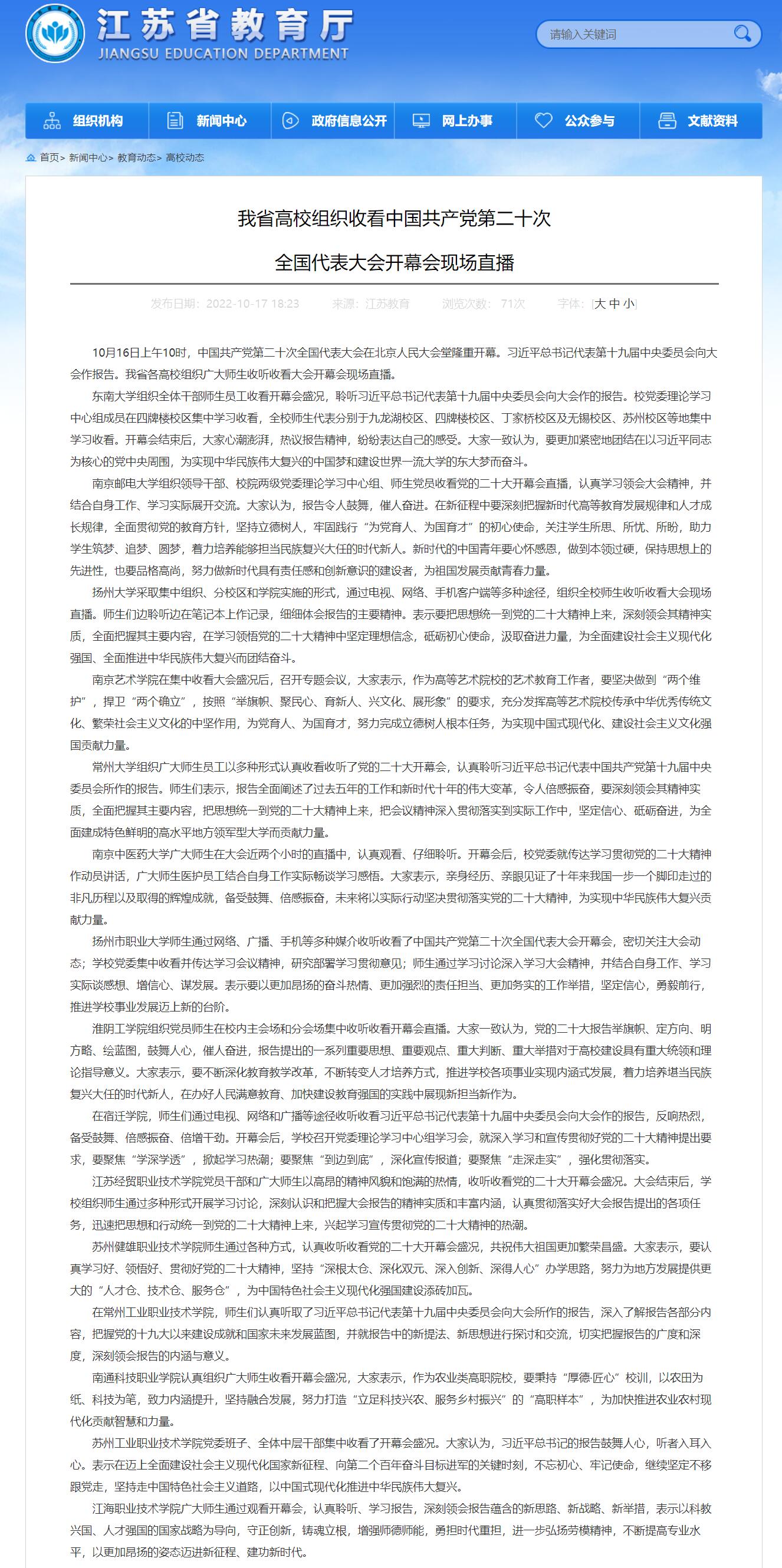| 【省教育廳官網】我省高校組織收看中國共產黨第二十次全國代表大會開幕會現場直播 |