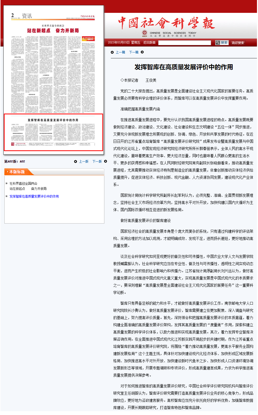 | 【中國社會科學報】發揮智庫在高質量發展評價中的作用 |