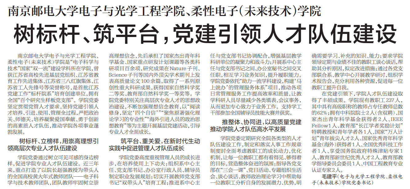 | 【新華日報】樹標桿、筑平臺,黨建引領人才隊伍建設 |