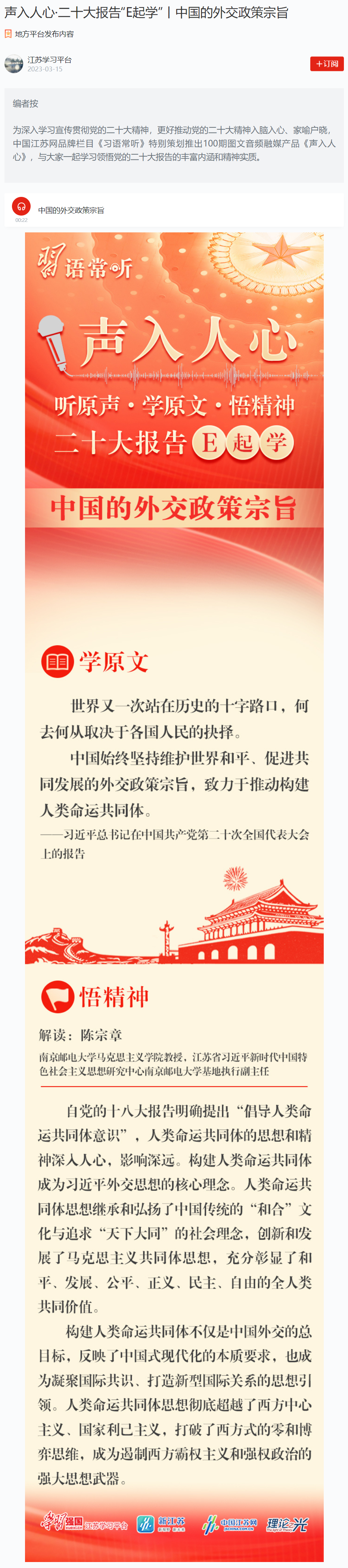 | 【學(xué)習(xí)強(qiáng)國(guó)】聲入人心·二十大報(bào)告“E起學(xué)”丨中國(guó)的外交政策宗旨 |