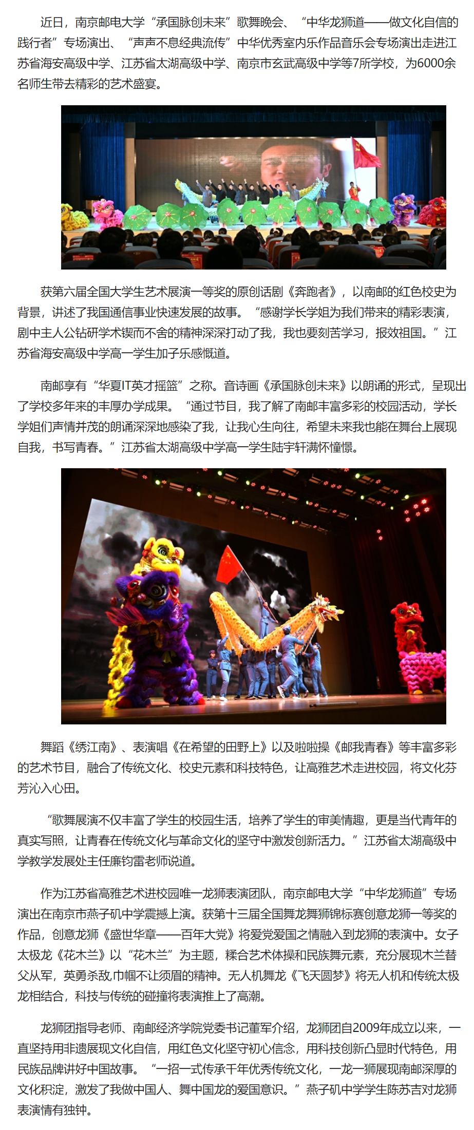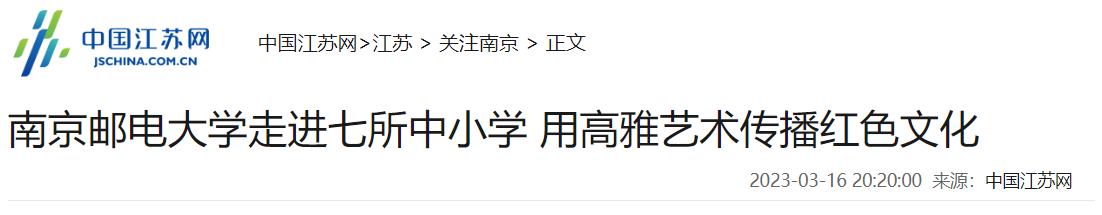 | 【中國江蘇網(wǎng)】南京郵電大學(xué)走進(jìn)七所中小學(xué) 用高雅藝術(shù)傳播紅色文化 |