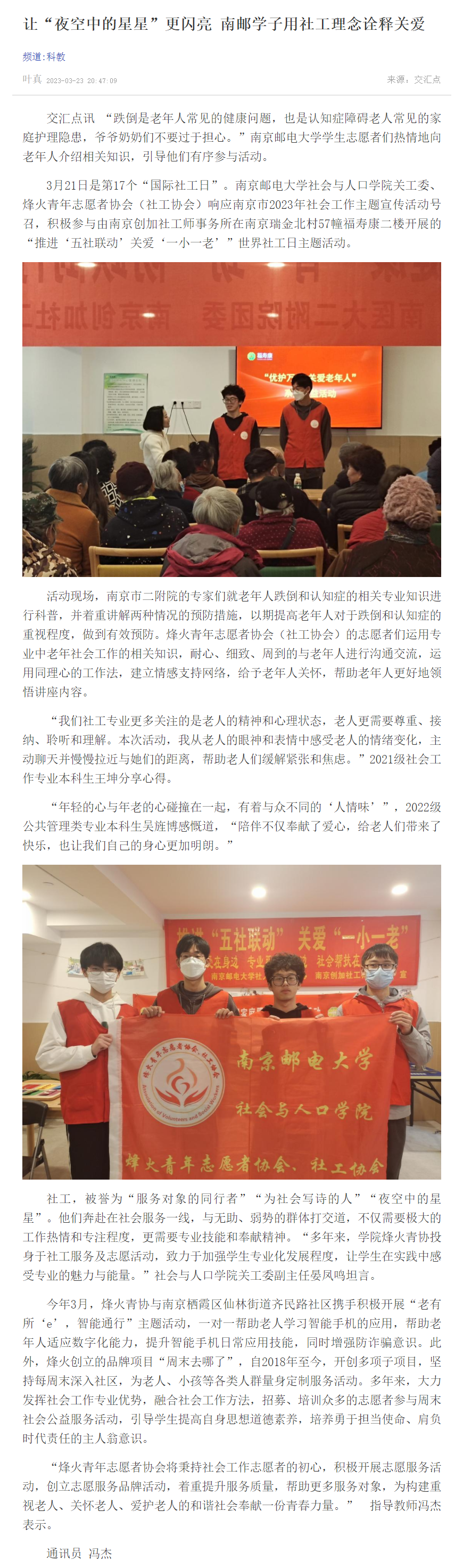 | 【新華日報客戶端】讓“夜空中的星星”更閃亮 南郵學子用社工理念詮釋關愛 |