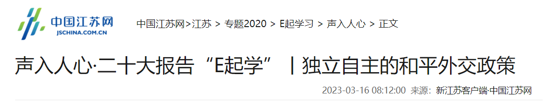 | 【中國江蘇網】聲入人心·二十大報告“E起學”丨獨立自主的和平外交政策 |