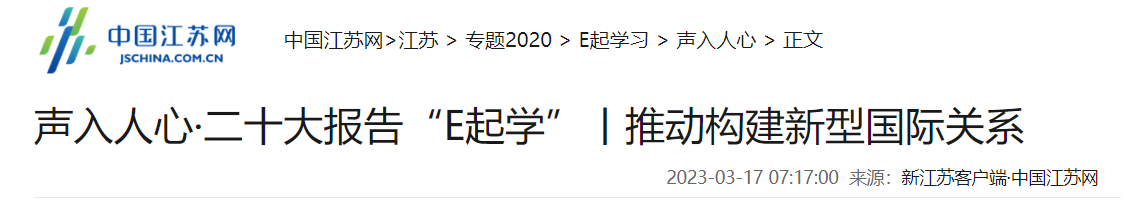| 【中國江蘇網】聲入人心·二十大報告“E起學”丨推動構建新型國際關系 |