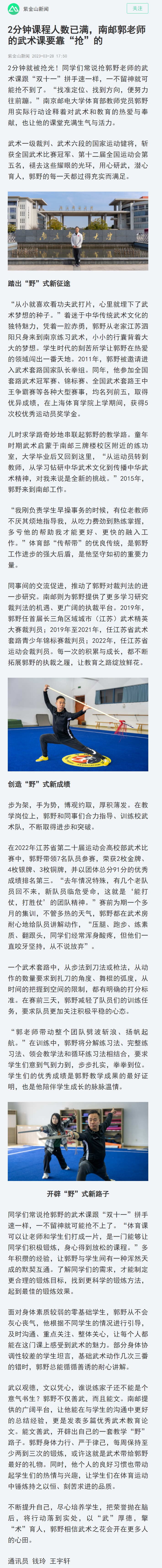 | 【南京日報客戶端】2分鐘課程人數已滿,南郵郭老師的武術課要靠“搶”的 |