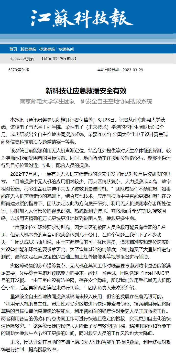 | 【江蘇科技報】新科技讓應急救援安全有效 |