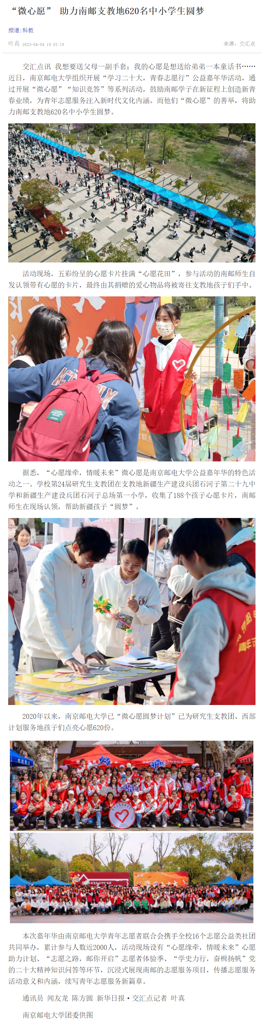 | 【新華日報客戶端】“微心愿” 助力南郵支教地620名中小學生圓夢 |