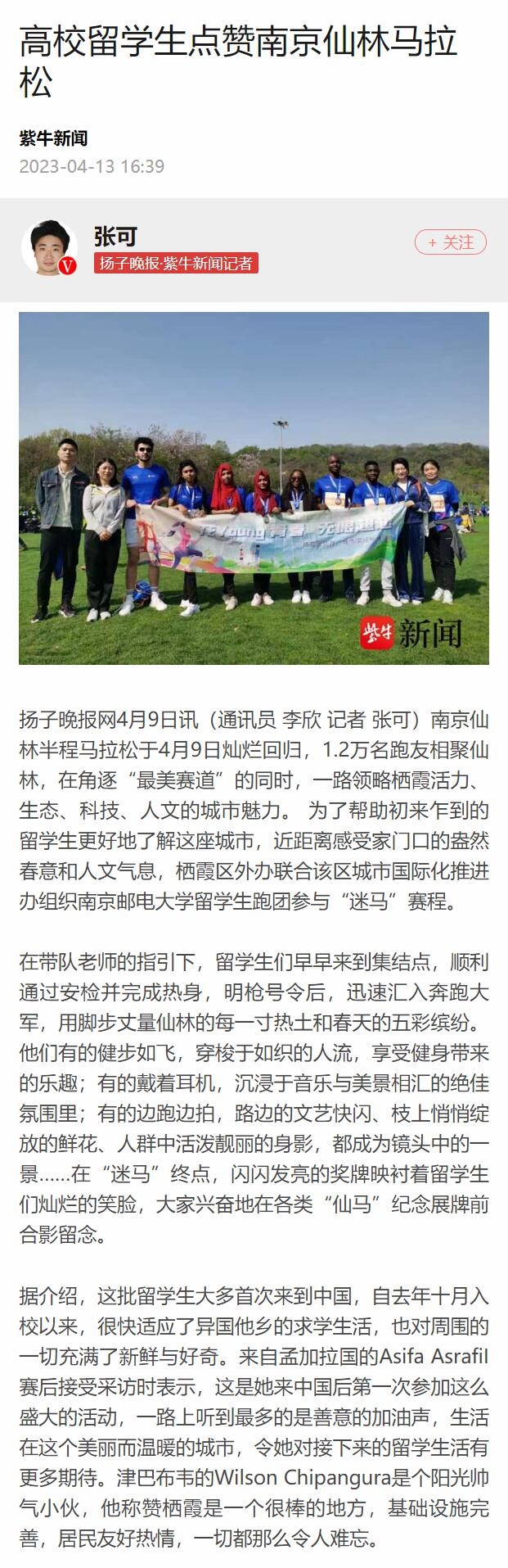 | 【揚(yáng)子晚報(bào)客戶端】高校留學(xué)生點(diǎn)贊南京仙林馬拉松 |