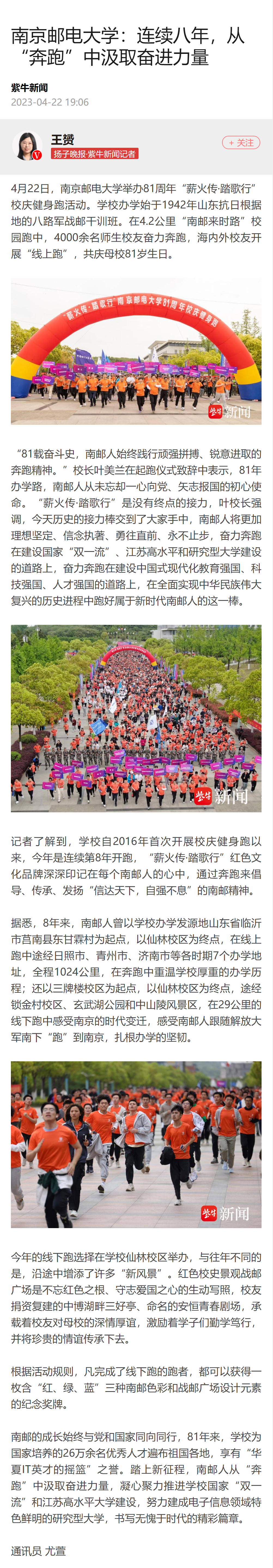 | 【揚子晚報客戶端】南京郵電大學:連續八年,從“奔跑”中汲取奮進力量 |