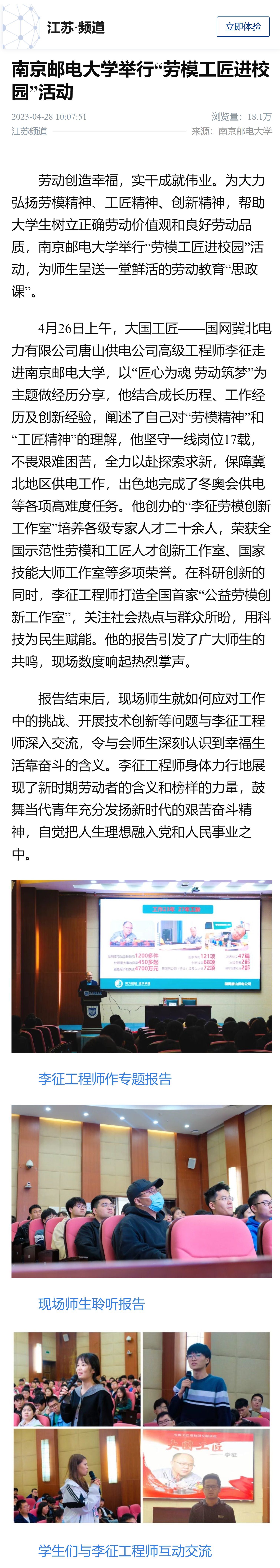 | 【新華社客戶端】南京郵電大學舉行“勞模工匠進校園”活動 |