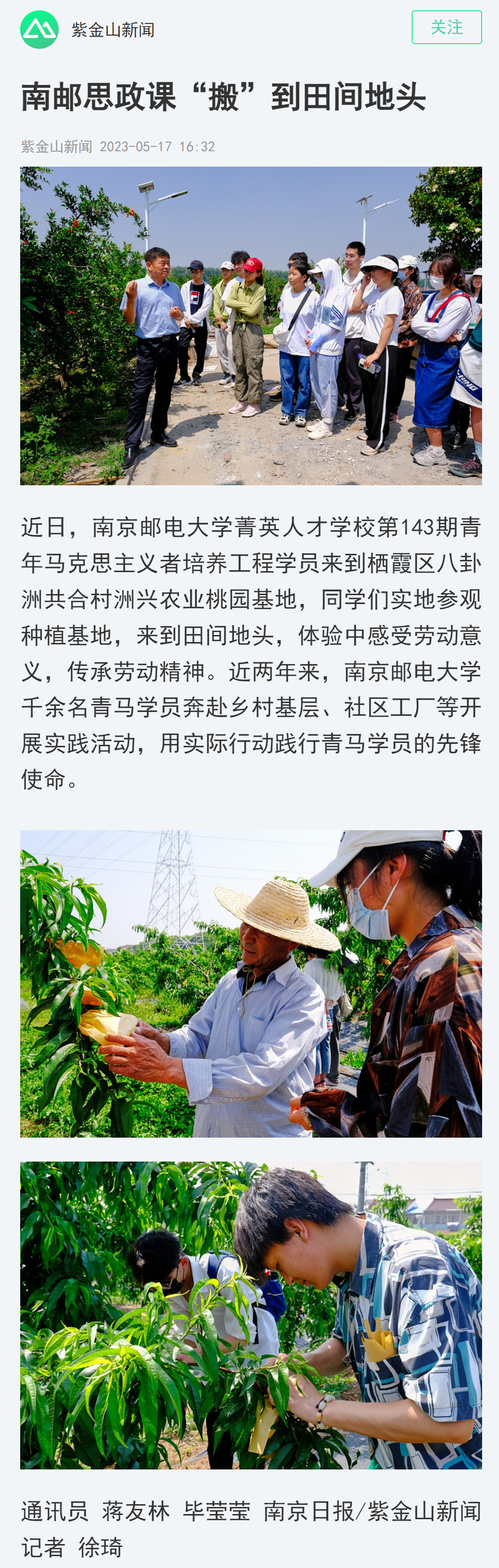 | 【南京日報客戶端】南郵思政課“搬”到田間地頭 |