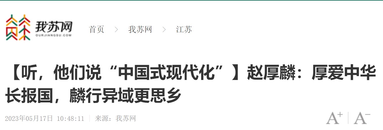 | 【我蘇網】趙厚麟:厚愛中華長報國,麟行異域更思鄉 |