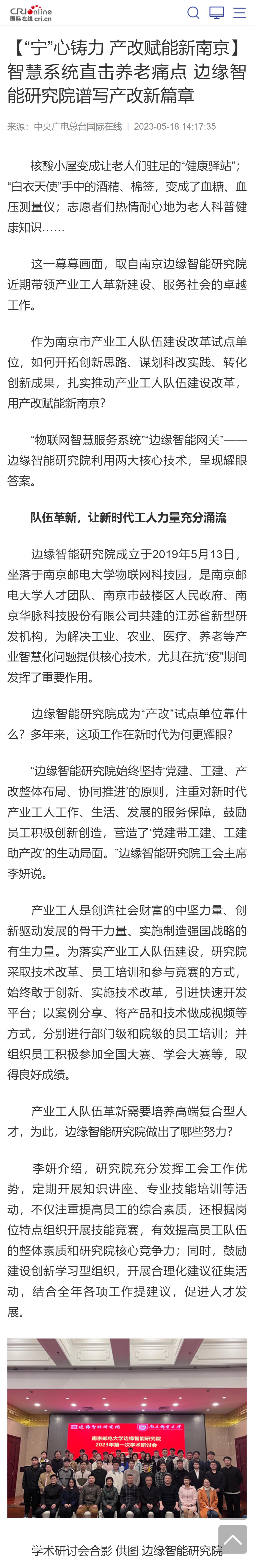 | 【中央廣電總臺國際在線】智慧系統(tǒng)直擊養(yǎng)老痛點(diǎn) 邊緣智能研究院譜寫產(chǎn)改新篇章 |