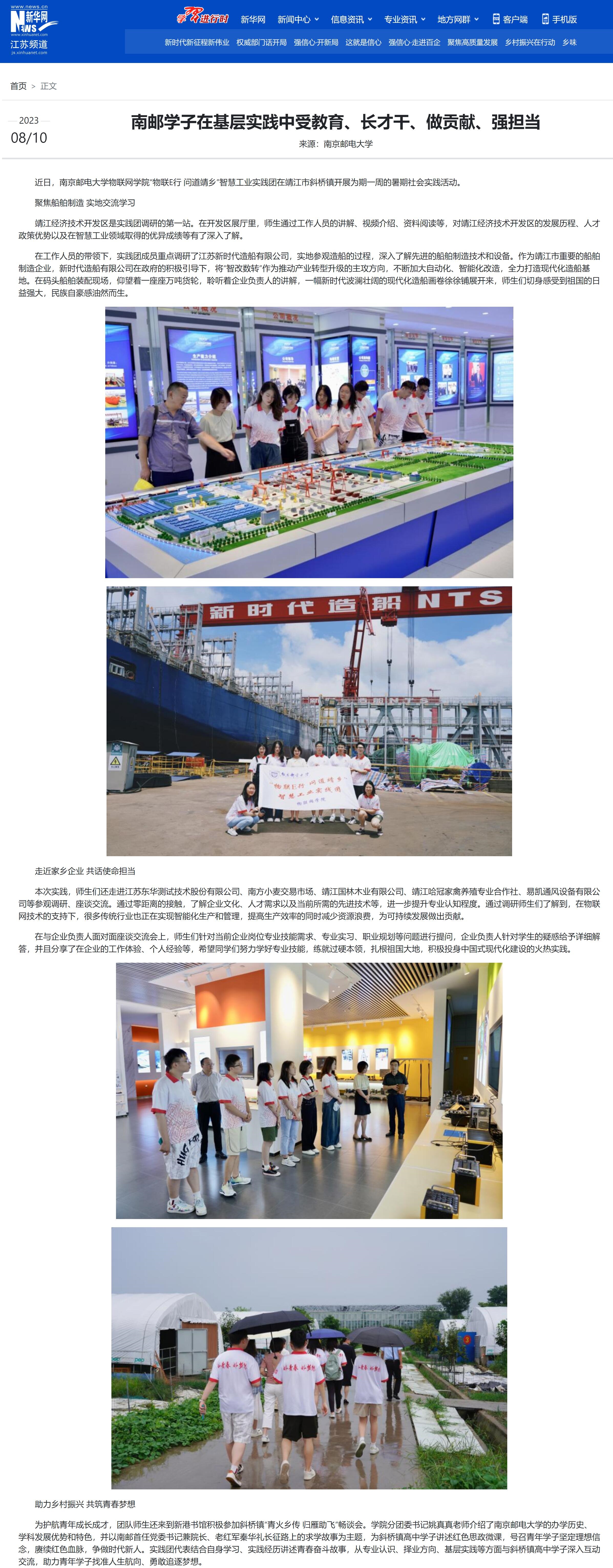 | 【新華網(wǎng)】南郵學(xué)子在基層實(shí)踐中受教育、長(zhǎng)才干、做貢獻(xiàn)、強(qiáng)擔(dān)當(dāng) |