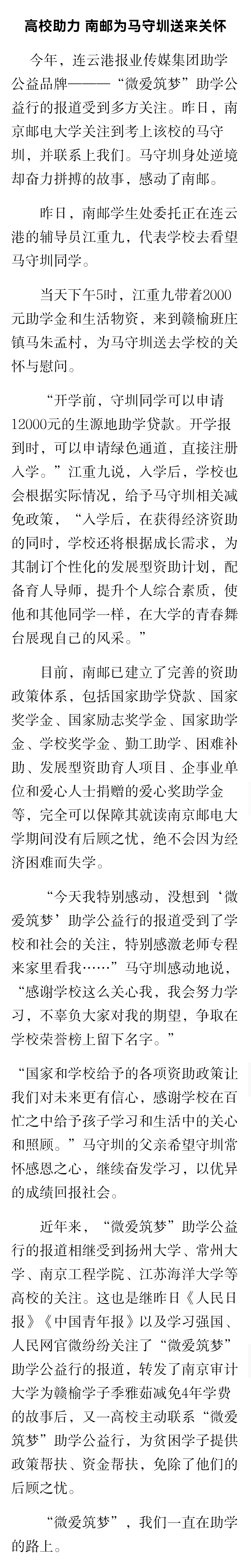 【蒼梧晚報】南郵為馬守圳送來關懷