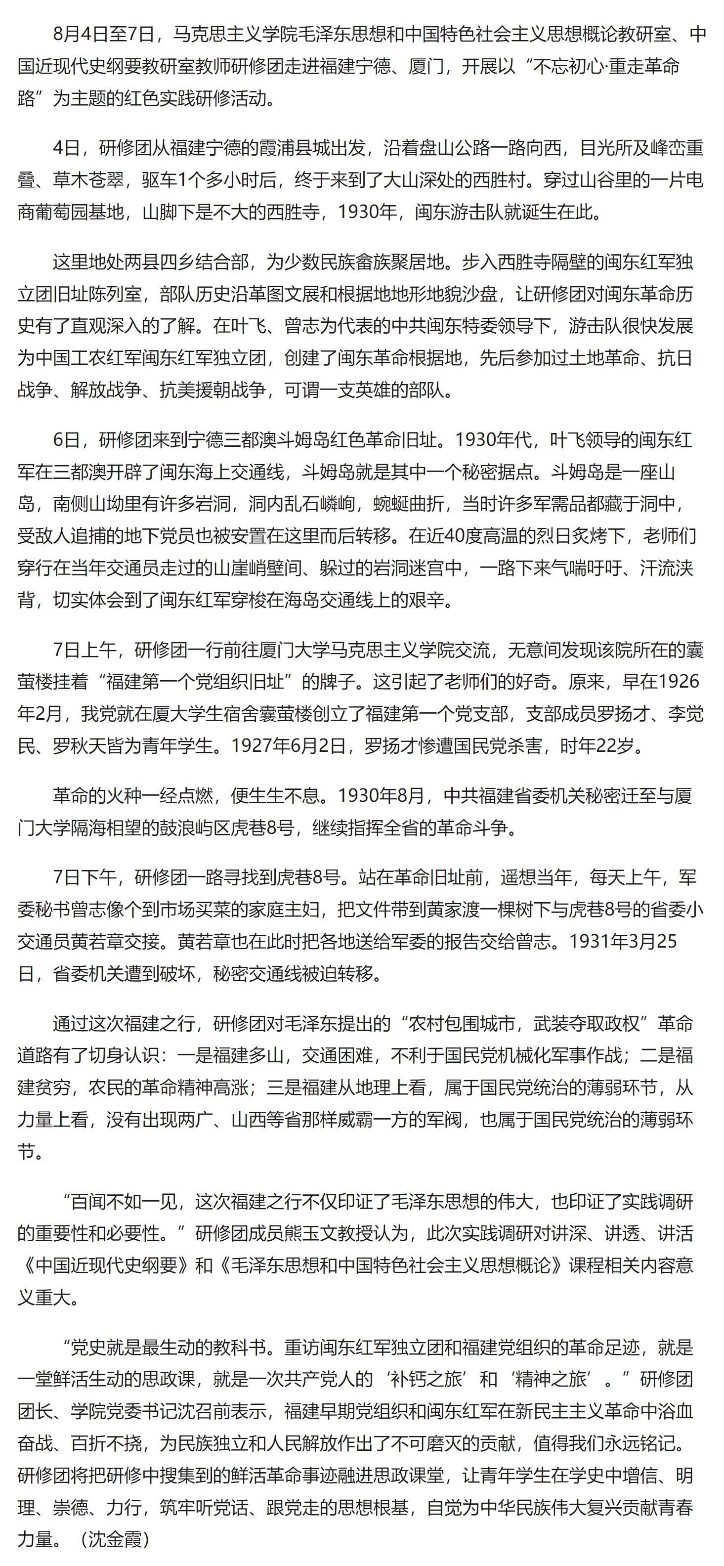 | 【中國江蘇網】南京郵電大學馬克思主義學院教師赴閩開展“重走革命路”紅色研修活動 |