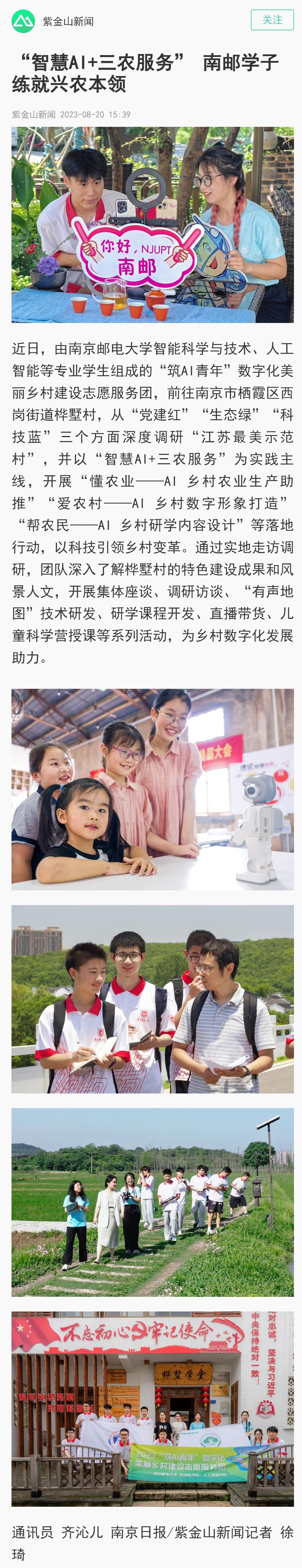 | 【南京日報客戶端】“智慧AI+三農(nóng)服務(wù)” 南郵學(xué)子練就興農(nóng)本領(lǐng) |
