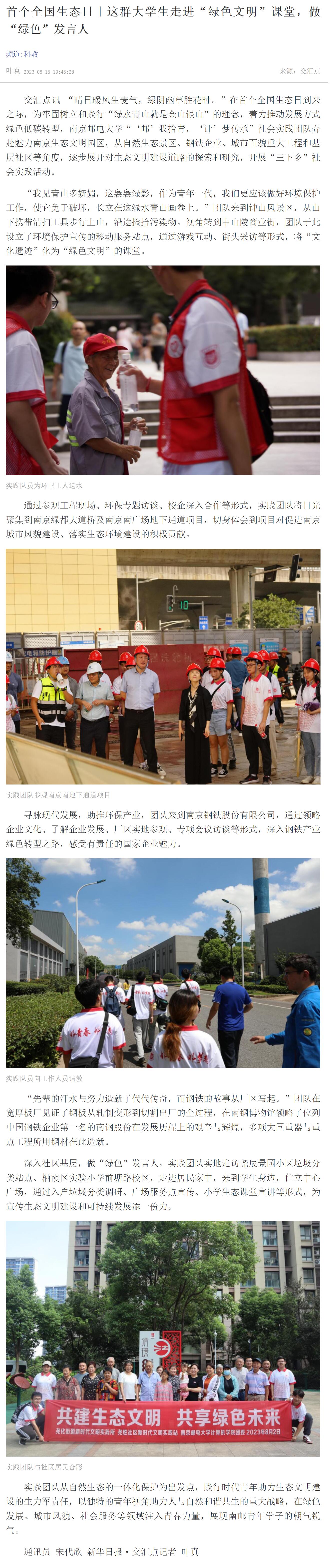 | 【新華日報客戶端】這群大學生走進“綠色文明”課堂,做“綠色”發言人 |