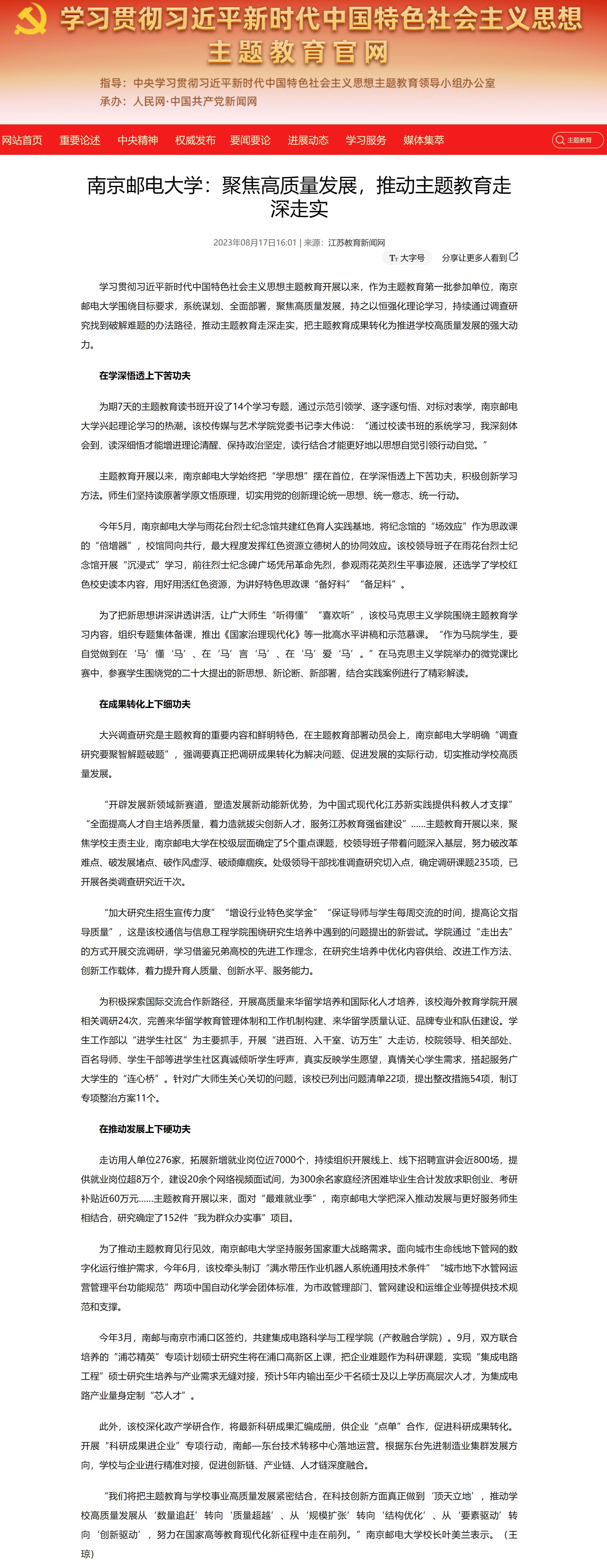 | 【主題教育官網】南京郵電大學:聚焦高質量發展,推動主題教育走深走實 |