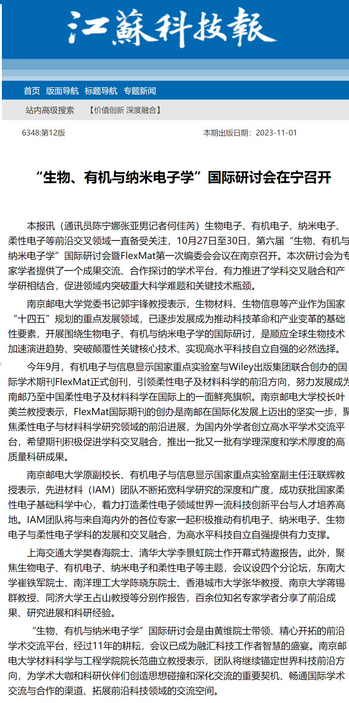 | 【江蘇科技報】“生物、有機與納米電子學”國際研討會在寧召開 |