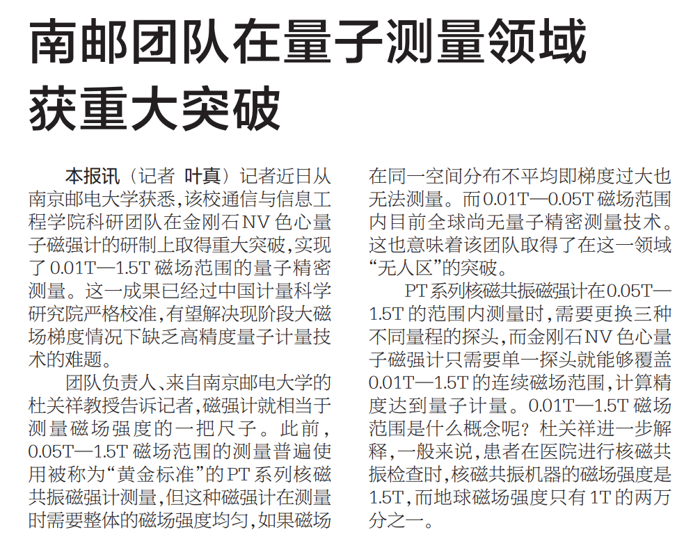| 【新華日報】南郵團隊在量子測量領域獲重大突破 |