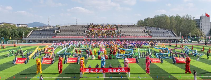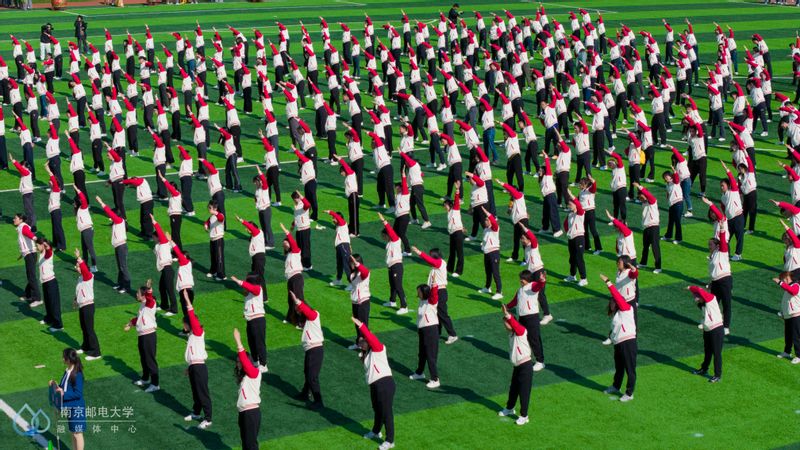 最美方陣 開(kāi)幕式表演環(huán)節(jié)精彩不斷。由校工會(huì)策劃的教職工《第九套廣播體操》表演,展現(xiàn)出教師們健康活力、積極向上的精神面貌。創(chuàng)意龍獅表演《紀(jì)念抗戰(zhàn)勝利80周年——正義必勝》以氣勢(shì)恢宏的藝術(shù)語(yǔ)言,生動(dòng)再現(xiàn)了中華民族在抗日戰(zhàn)爭(zhēng)中的英勇歷程與不屈精神,演出在“正義必勝、和平必勝、人民必勝”的集體高呼中達(dá)到情感頂峰。由大二年級(jí)640名女生帶來(lái)的大型團(tuán)體操《解碼青春》,通過(guò)不斷變換隊(duì)形與畫(huà)板色彩,依次呈現(xiàn)出南郵紅綠藍(lán)特色元素,傳遞了“愛(ài)運(yùn)動(dòng)、郵未來(lái)”的精神內(nèi)涵。