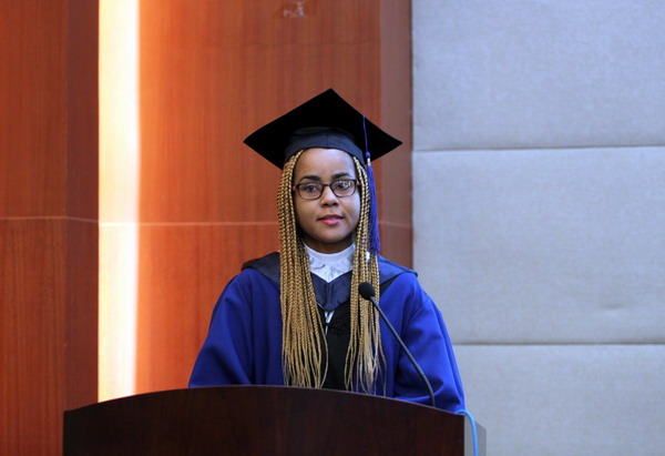 Graduate representative Fanny, on behalf of all international graduates of the year 2017, makes the address