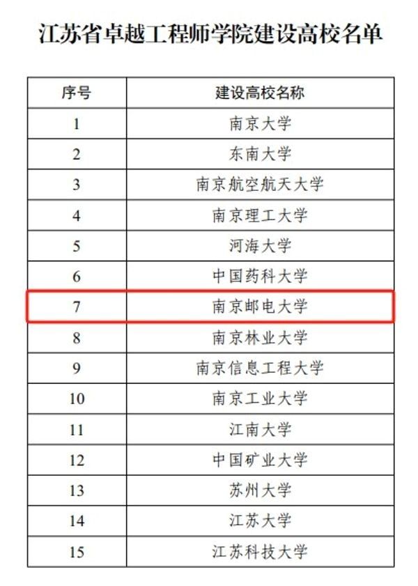 Recently, Jiangsu Provincial Department of Education released the list of universities for the construction of Jiangsu Province College of Engineer Excellence, selecting and recognizing 15 universities as “Jiangsu Province College of Engineer Excellence Construction Universities”, and NJUPT was successfully approved.